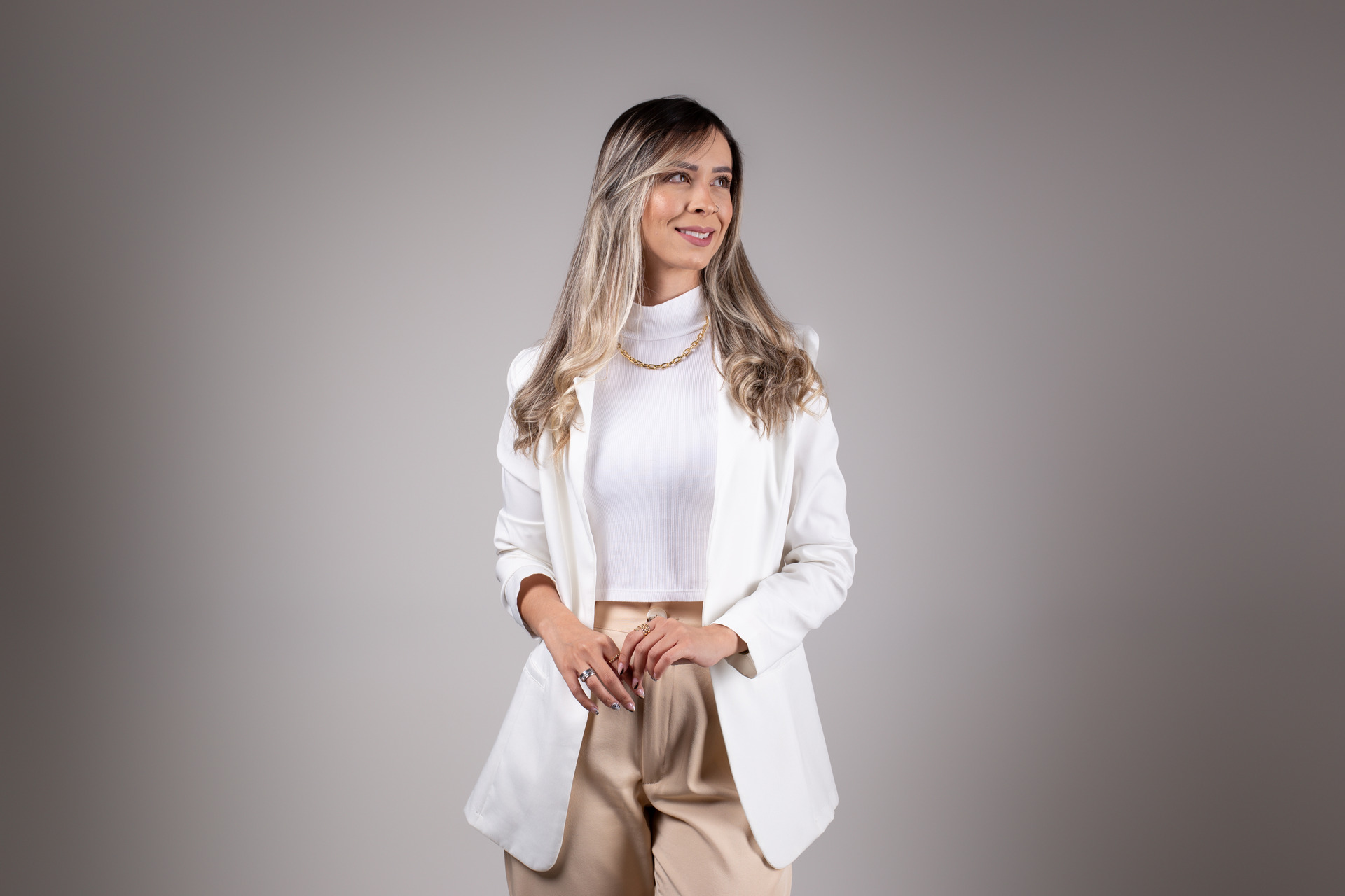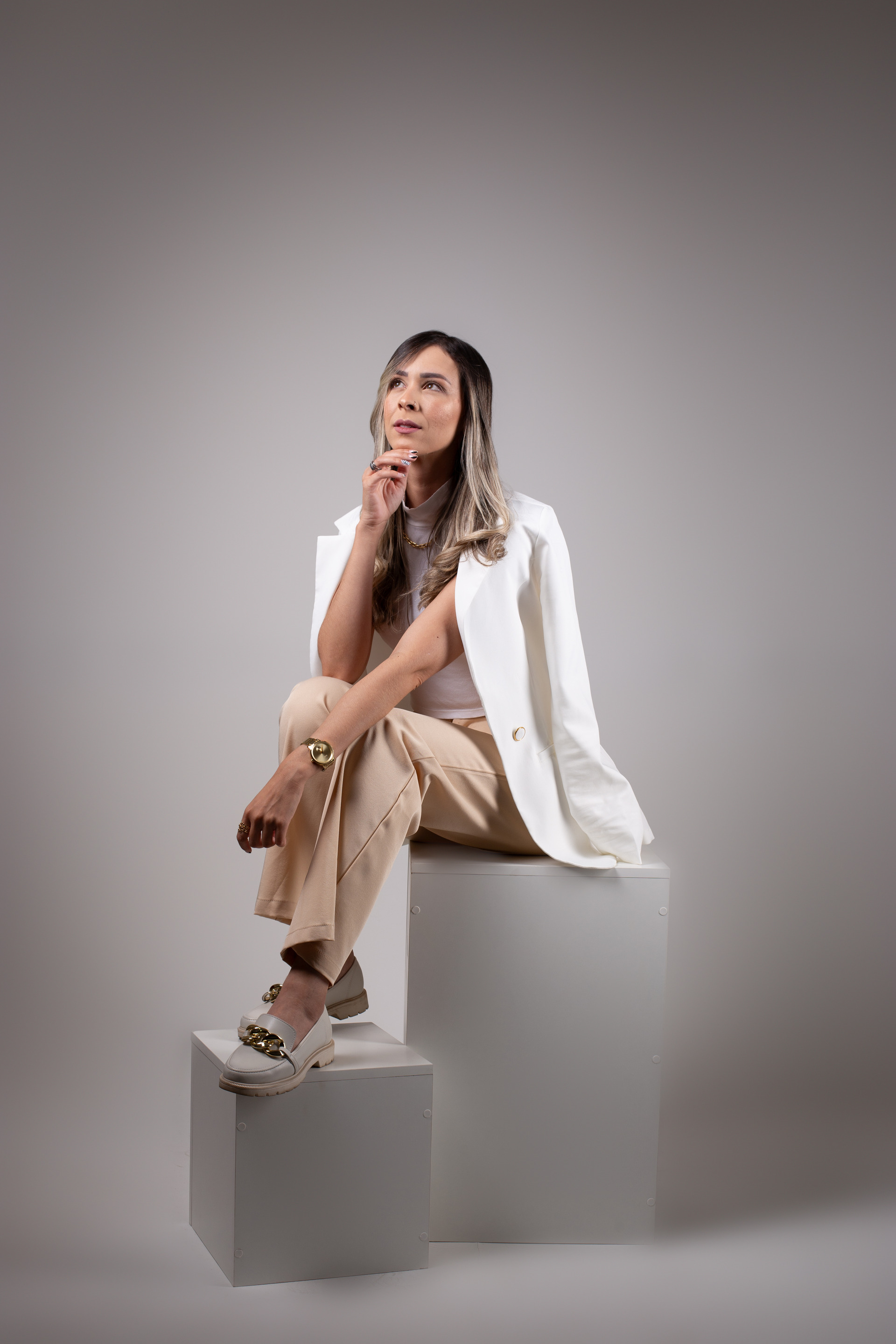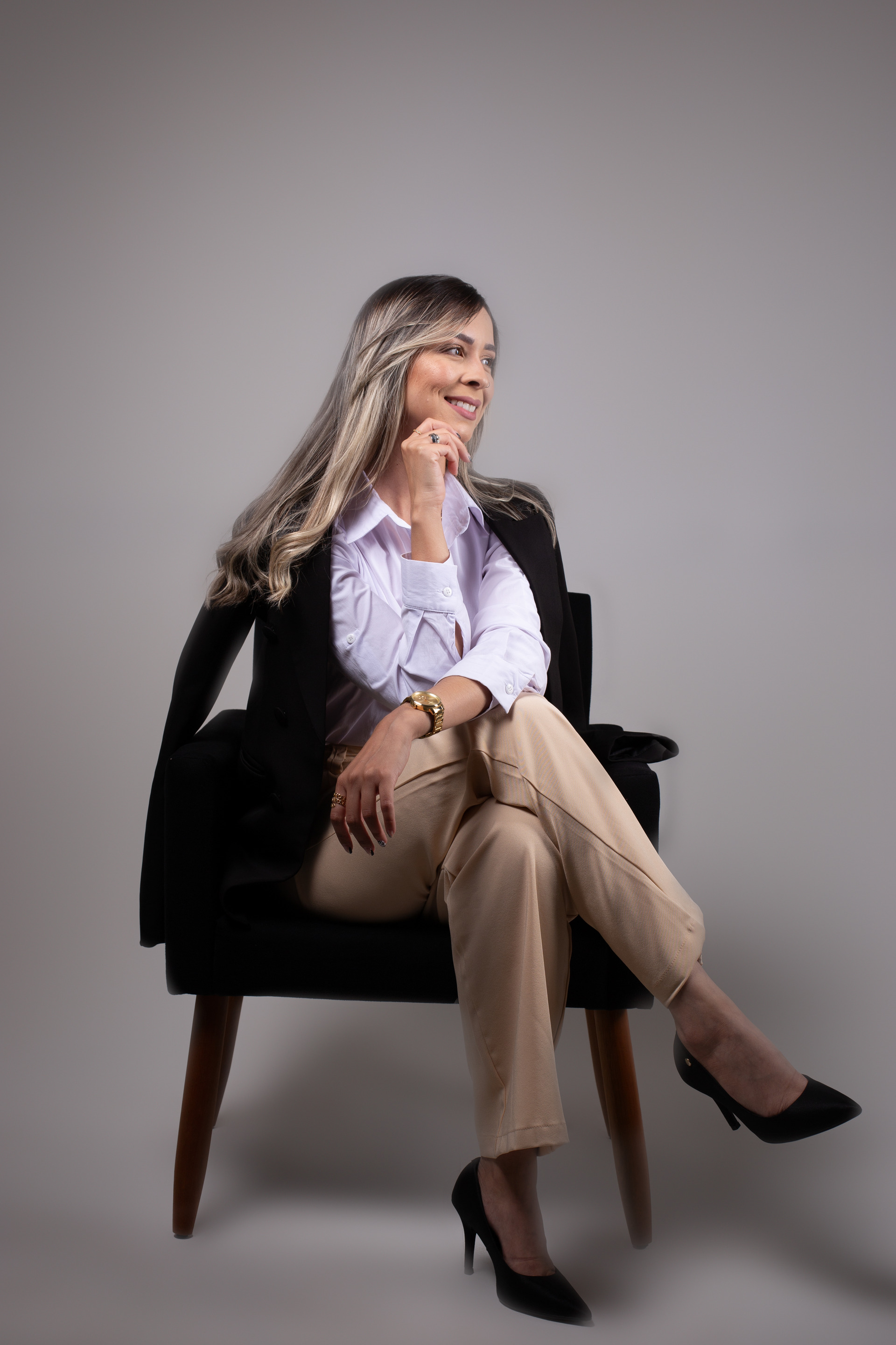 Durante o ensaio, eu direciono todas as poses e ajudo você a criar uma imagem pessoal forte e impactante!"